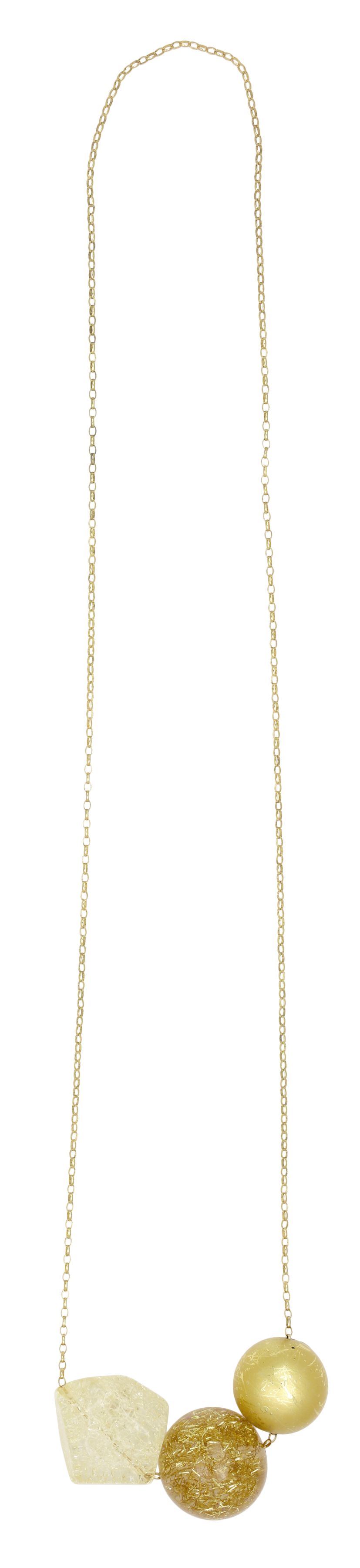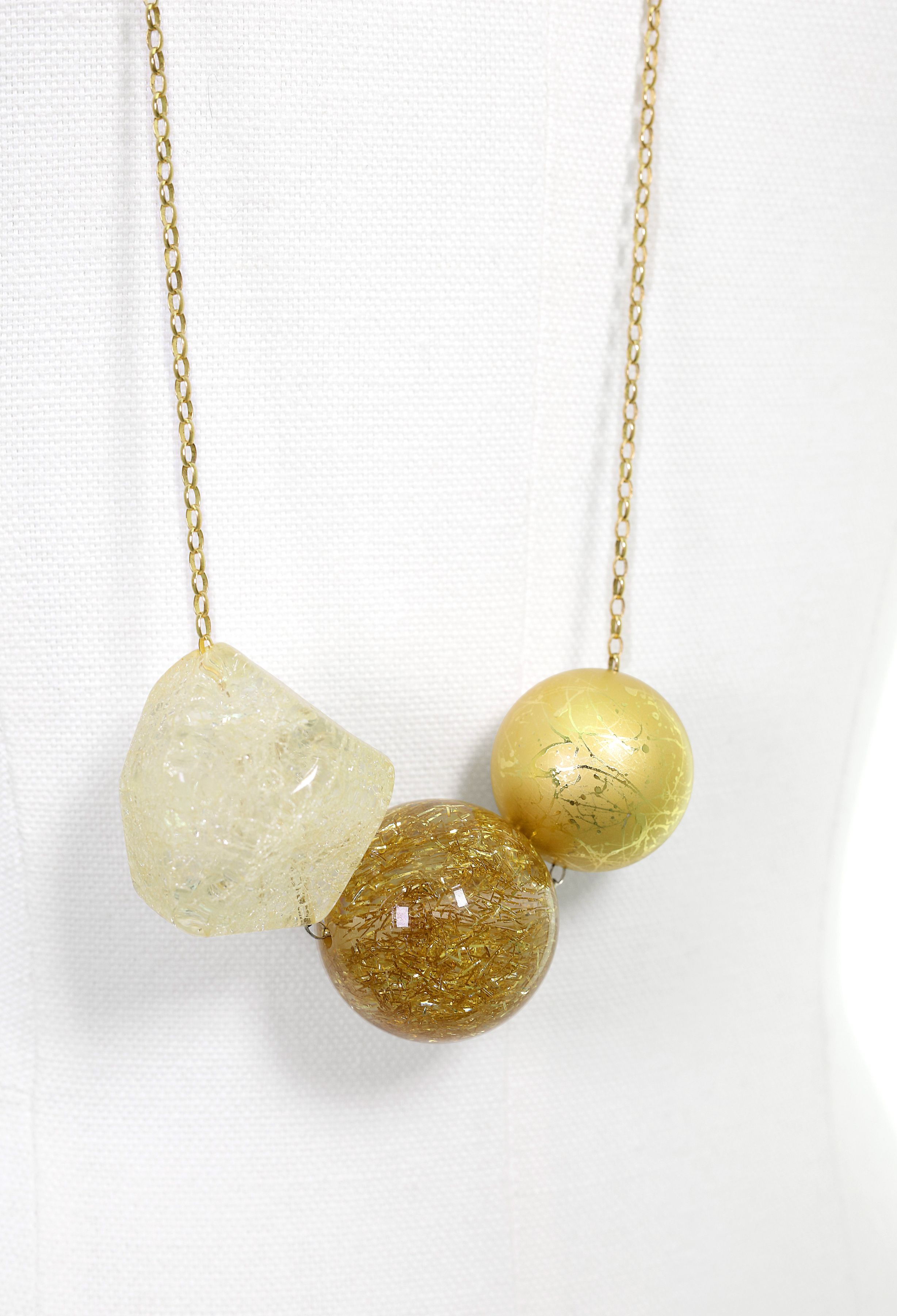 acrylic and polyester beads, brass chain