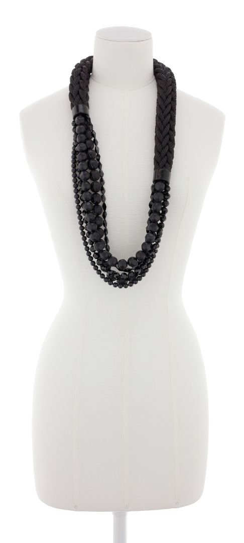 acrylic and glass beads, poyester rope