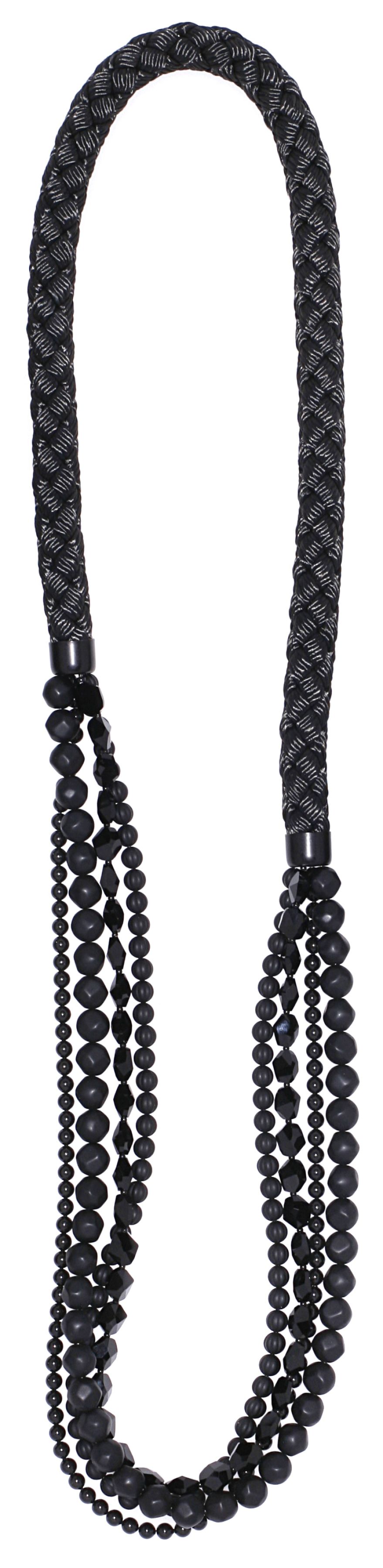 acrylic and glass beads, poyester rope